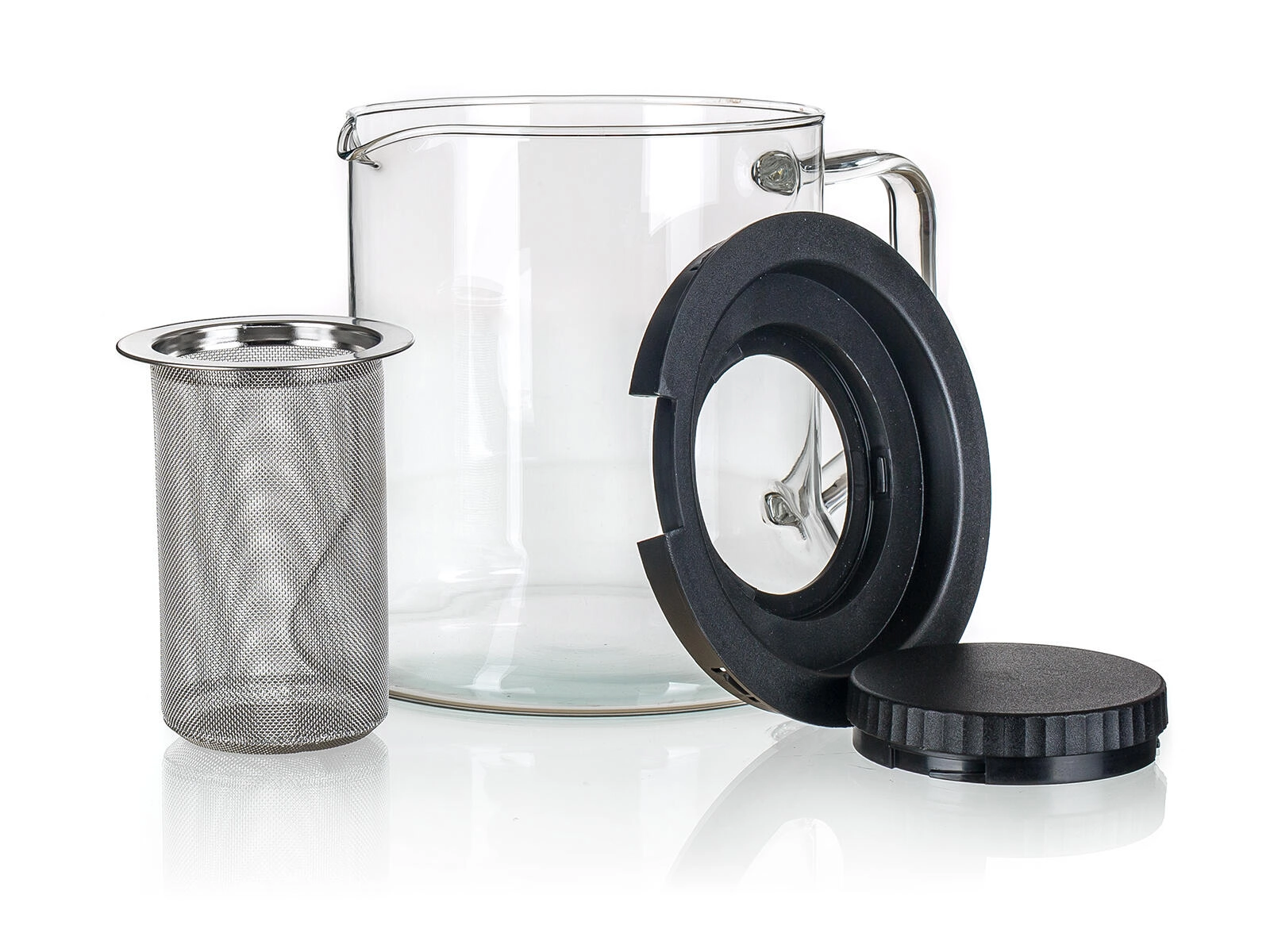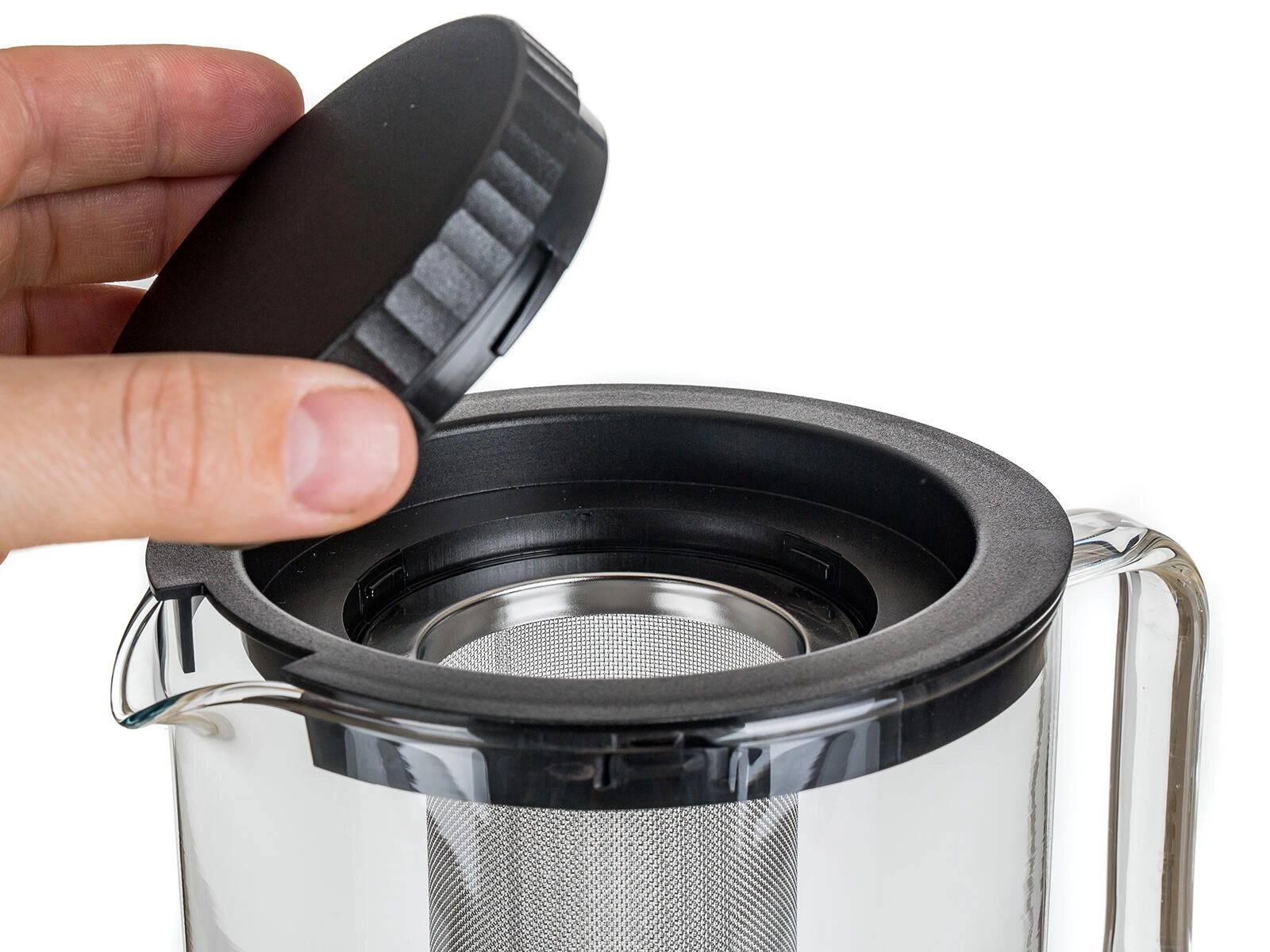 Das feine Edelstahlsieb hält auch kleine Blätter und Kräuter zurück und kann leicht herausgenommen werden, wenn Sie die Kanne auch ohne Filter verwenden möchten. Die glatte, nicht poröse Oberfläche ist hygienisch und pflegeleicht – Kanne und Teile können in der Spülmaschine gereinigt werden. Der Kunststoffdeckel schließt gut ab und der bequeme Glasgriff sorgt für sicheres Ausgießen.