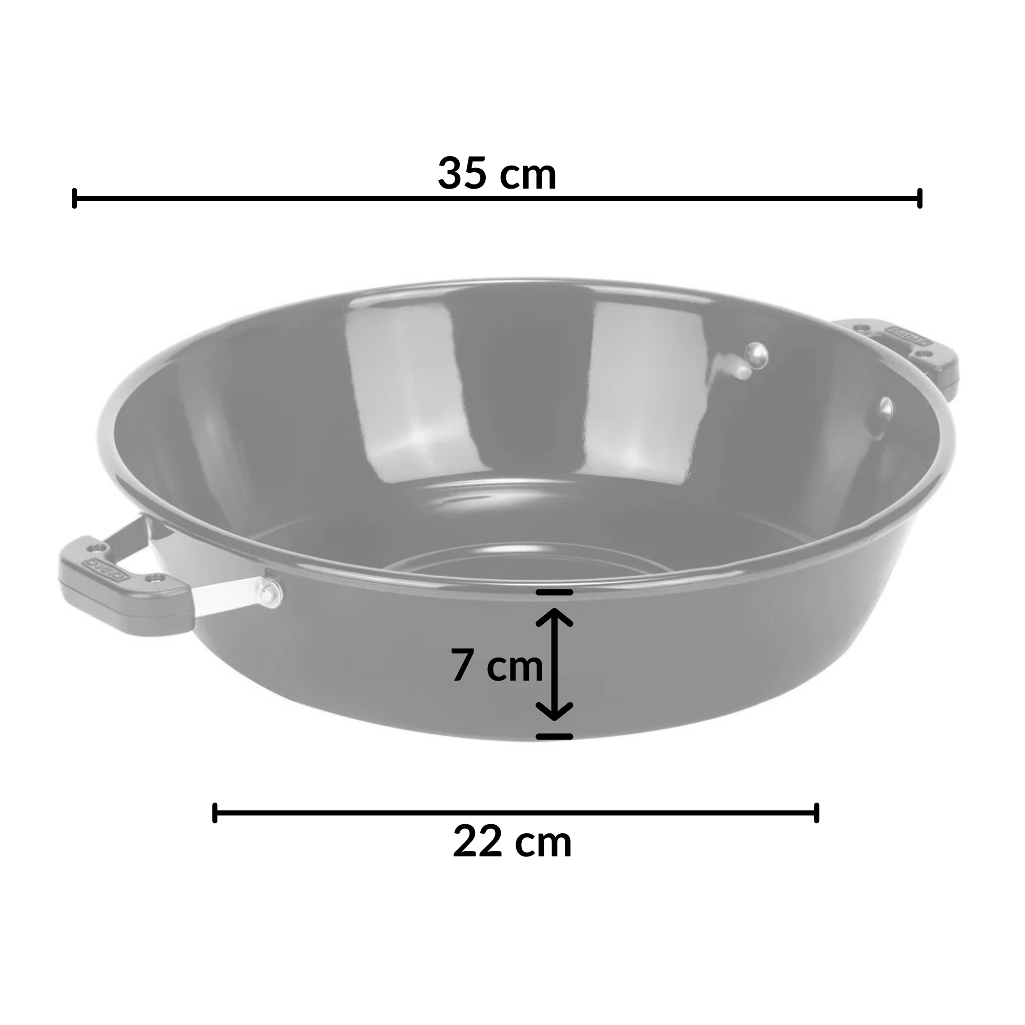 Dieses praktische Zubehör für Ihren CADAC Grill oder Kocher vereint die Funktion von Deckel und Topf in einem. Mit einem Durchmesser von 35 cm und einer nutzbaren Kochfläche von 22 cm bietet es reichlich Platz für Beilagen, Saucen und Hauptgerichte. Dank der emaillierten Oberfläche wird die Wärme gleichmäßig verteilt und Speisen haften nicht an.