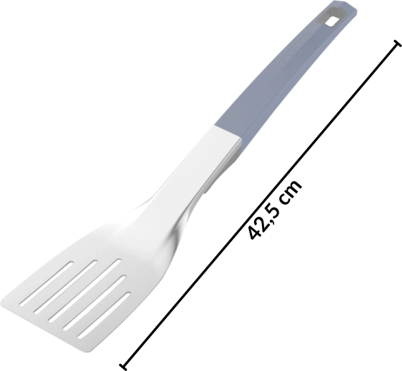 Die perforierte Klinge erleichtert das Aufnehmen und Wenden der Speisen und lässt überschüssiges Fett und Öl abtropfen.