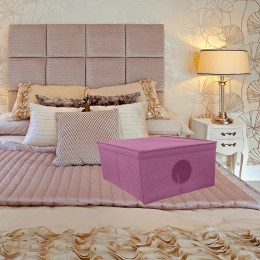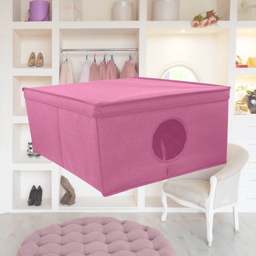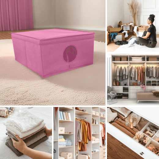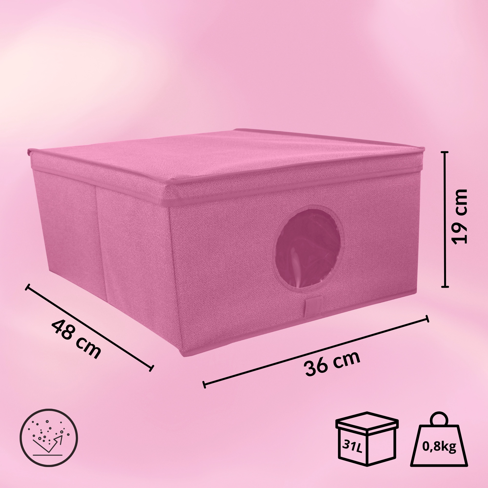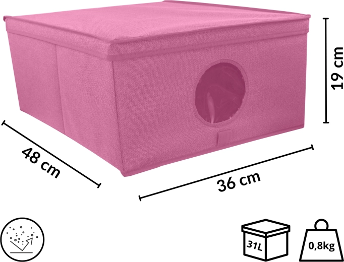 Die Box ist ideal für Kleidung, Accessoires, Spielzeug, Handtücher und Bettwäsche. Dank des Deckels bleibt der Inhalt vor Staub und Schmutz geschützt, und das elegante, minimalistische Design ohne seitliche Griffe passt hervorragend in moderne Interieurs. Funktioniert einzeln ebenso gut wie in größeren Arrangements auf Regalböden von Kleiderschränken.