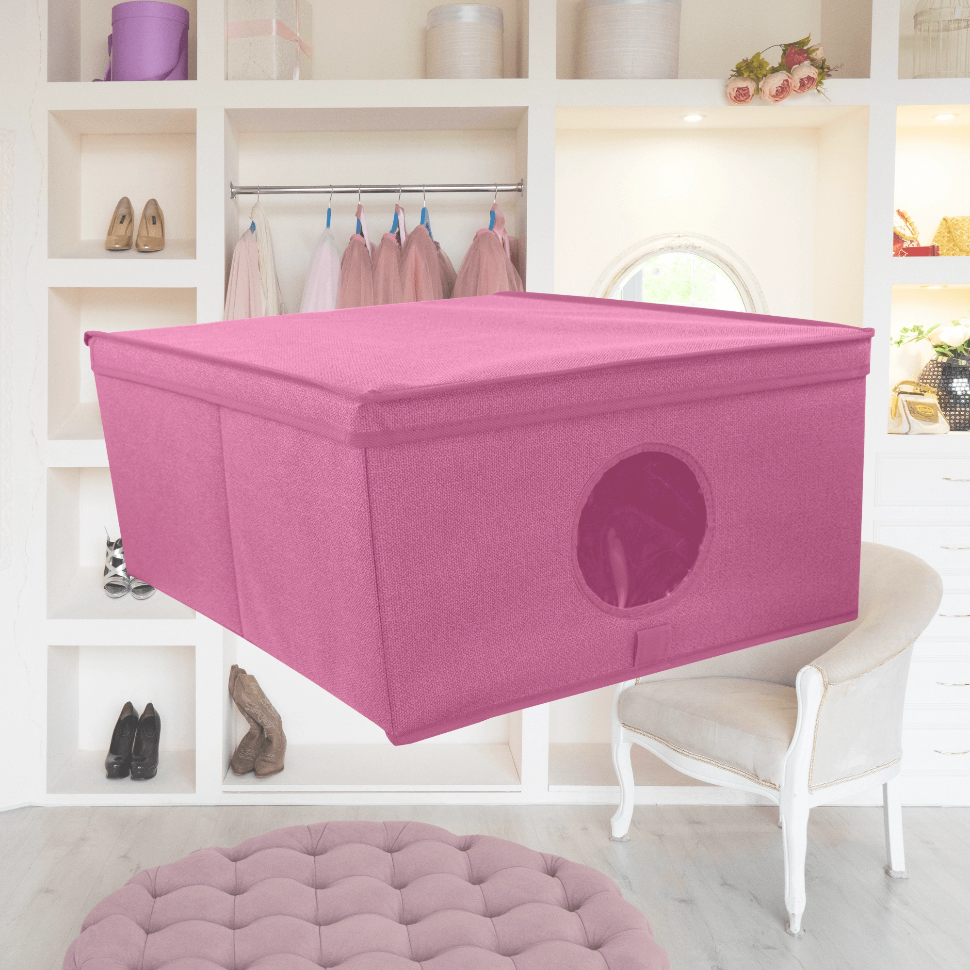 Der geschlossene Deckel hält den Inhalt sauber und verborgen. Ideal zur Aufbewahrung von Kleidung, Textilien und saisonalen Accessoires im Schrank oder auf Regalen.