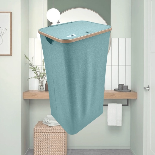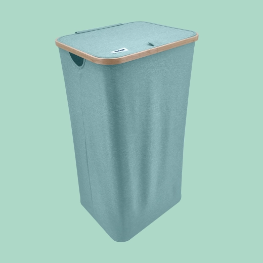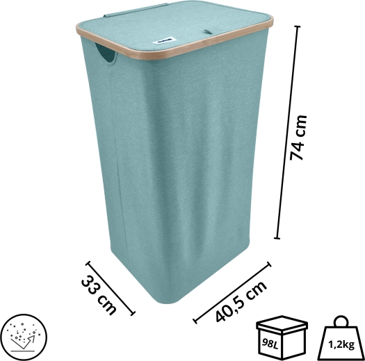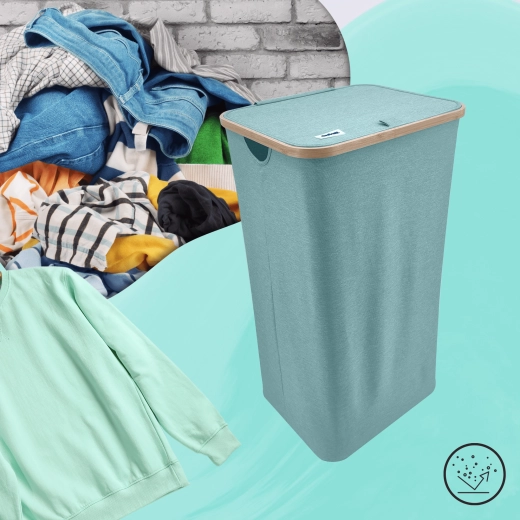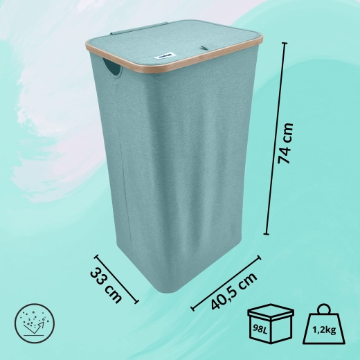 Mintfarbener Wäschekorb mit Bambusrahmen, 98 l, mintgrün