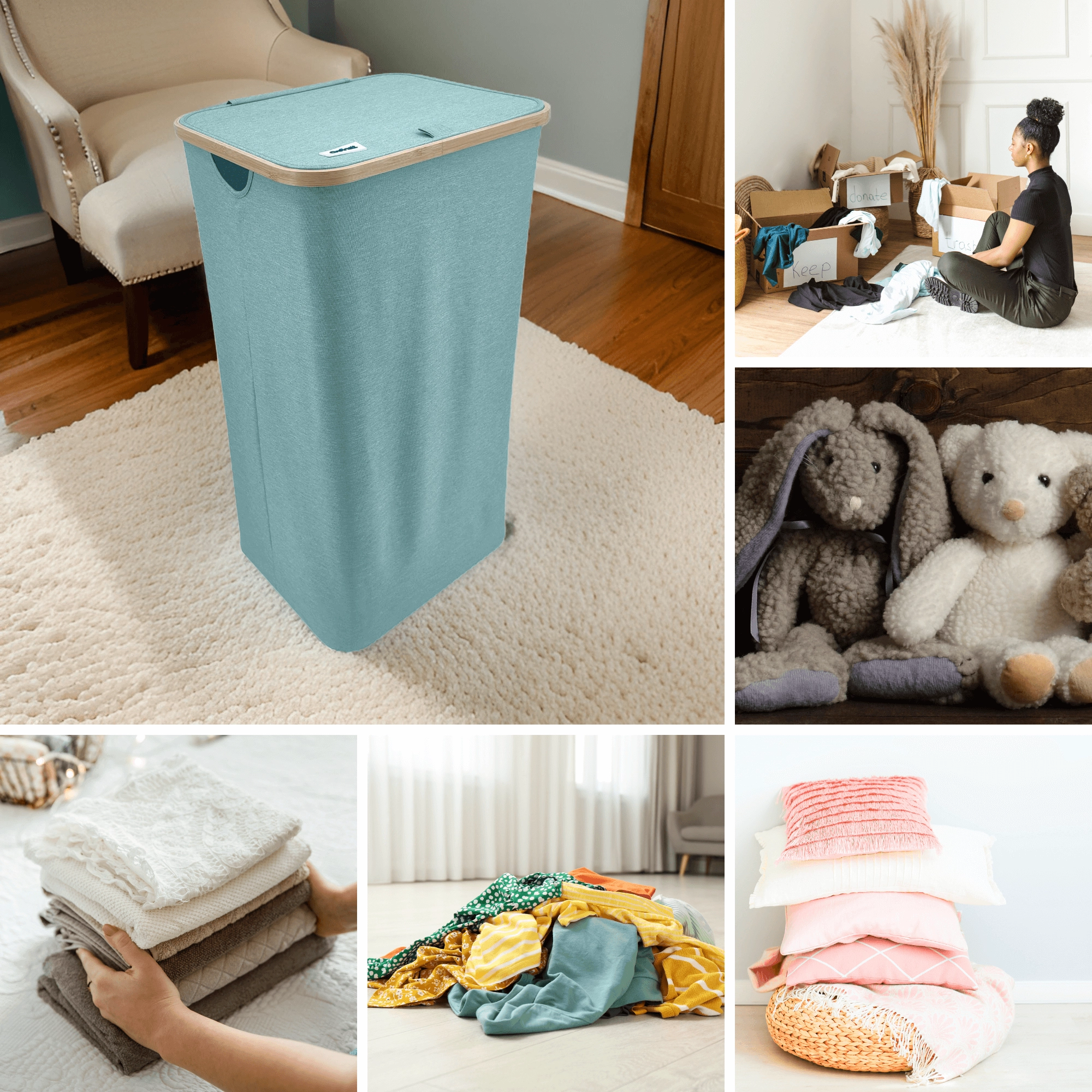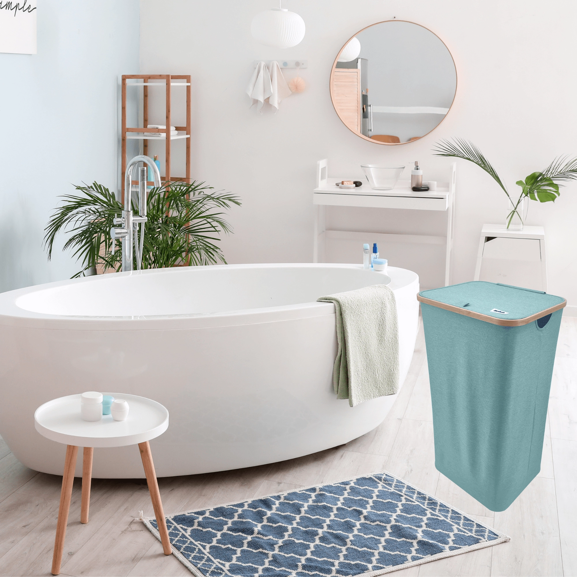 Die hohe, schlanke Form fasst große Wäschemengen, ohne viel Platz einzunehmen. Ideal für Bad, Schlafzimmer und Ankleide.