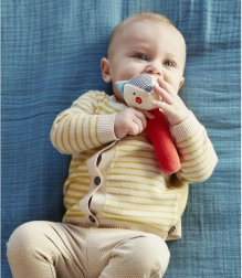 Die Rassel besteht aus organischer, GOTS-zertifizierter Baumwolle und ist mit Pflanzenfarben gefärbt – sanft zur zarten Babyhaut und zur Umwelt. Perfekt für das tägliche Spielen und als Unterhaltung unterwegs.