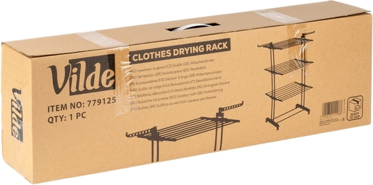 Sechs unabhängig klappbare Flügel lassen sich an Länge und Volumen der Wäsche anpassen. Seitliche Arme mit Öffnungen für Kleiderbügel eignen sich perfekt für Hemden oder Mäntel, die untere Ablage dient zum Trocknen von Schuhen und Accessoires. Vier Rollen, davon zwei mit Bremse, ermöglichen bequemes Umstellen ohne Kratzer auf dem Boden.