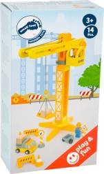 Der Kran dreht sich um seine eigene Achse und kann dank beweglichem Ausleger und Haken jede Last versetzen. Ideal zum Trainieren von Koordination und Planung.