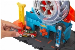 Lassen Sie Ihre Kinder in die Hot Wheels Welt voller Action und Kreativität eintauchen. Hot Wheels Město Super Twist Reifenservice bietet jede Menge Spaß mit realistischen Details wie einem drehbaren Reifendiplay und einem Schlüssel, der Autos die Struktur hinauf zu neuen Abenteuern bewegt.
