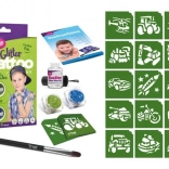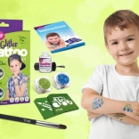 Die Glitzertattoos sind wasserfest und dadurch besonders langlebig. Wenn Sie sie entfernen möchten, genügt Alkohol oder Babyöl. Für zusätzlichen Spaß können Sie die fertigen Designs mit wackelnden Augen oder selbstklebenden Steinchen verzieren. Tragen Sie einfach eine kleine Menge Kleber auf und drücken Sie den Stein auf die Haut.