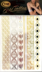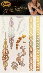 Goldene temporäre Armbänder TyToo sind ein echtes Schmuckstück für Ihre Haut. Sie sind einfach und schnell anzuwenden, geeignet für verschiedene Körperteile.