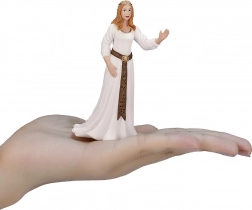 Jeder Aspekt dieser Figur ist präzise ausgearbeitet – von den feinen Details am Kleid bis zu den realistischen Wellen im langen Haar.
