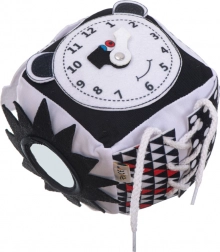 Dieser weiche sensorische Würfel macht jeden Tag Ihres kleinen Entdeckers wunderbar. Kontrastreiche Muster und schwarz-weiße Farben stimulieren das Sehvermögen, während verschiedene Texturen die Entwicklung des Tastsinns fördern. Der Würfel ist mit Greifringen und knisternden Elementen ausgestattet, die auch das Gehör der Kleinsten ansprechen.