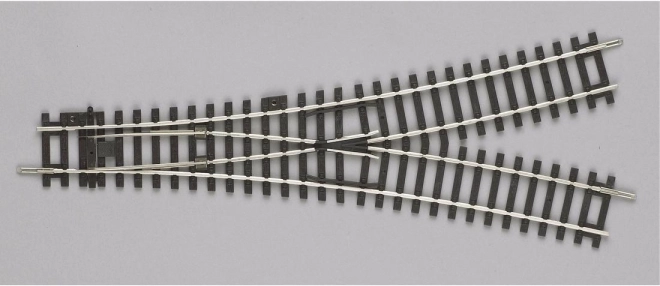 Weiche mit detaillierter Nachbildung hölzerner Schwellen in originalgetreuen Farben. Kombiniert zwei symmetrische 15°-Bögen R9. Kann manuell bedient werden. Es ist auch ein fernbedienbarer Antrieb erhältlich, für den der Anschluss bereits vorbereitet ist. Hauptmerkmale: symmetrisch 15° Radius (R9) 908 mm Nachbildung hölzerner Schwellen Dokumentation: Broschüre zum PIKO H0 A-Gleis (DE, EN)