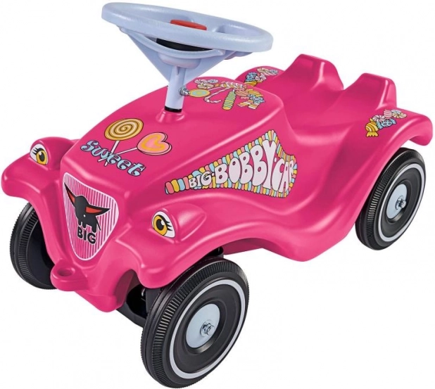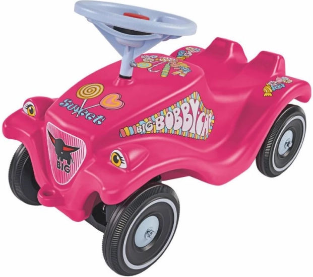 Das beliebte Rutschfahrzeug BIG Bobby Car Classic in Rosa mit niedlichen Süßigkeiten-Aufklebern ist eine hervorragende Wahl für die ersten Fahrerlebnisse. Dank des ergonomischen Sitzes und der stabilen Konstruktion unterstützt es eine korrekte Körperhaltung und die motorische Entwicklung.