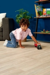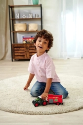 Dank des kippbaren Anhängers und der zu öffnenden Klappen entwickelt dieser Traktor die Feinmotorik und fördert die Vorstellungskraft der Kinder.