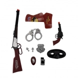 Verwandeln Sie das Kinderzimmer in die Prärie des Wilden Westens. Dieses Spielset für kleine Cowboys bietet alles Nötige für abenteuerliche Szenen – von „Sheriff“-Handschellen bis zum „Colt“, der Kostüm und Fantasie ergänzt. Leichte und einfach zu handhabende Accessoires sind auf Kinderhände abgestimmt.