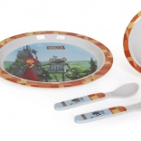 Dieses Tischset bringt Freude in jedes Kinderzimmer. Es besteht aus hochwertigem Kunststoff, was eine hohe Robustheit und einfache Pflege gewährleistet – spülmaschinengeeignet. Kinder werden das Design mit dem beliebten Ritter Rusty lieben, das jede Mahlzeit zu einem Abenteuer macht. Das Set enthält: