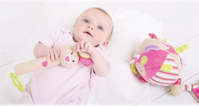 Die textile motorische Kugel Häschen Bella ist das perfekte interaktive Spielzeug für die Kleinsten. Durch sie können Kinder verschiedene Texturen kennenlernen und ihre sensorischen und motorischen Fähigkeiten entwickeln.