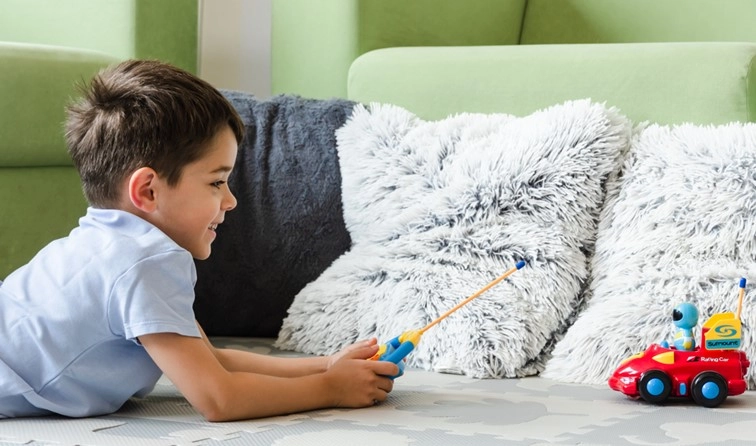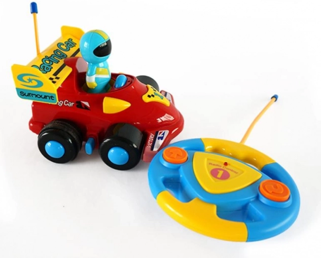 Die Lenkrad-Fernbedienung mit großen Tasten bringt Kindern die Grundlagen des Fahrens bei – vorwärts, rückwärts und lenken ohne komplizierte Koordination.