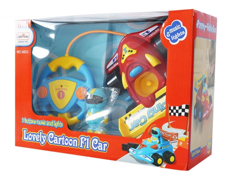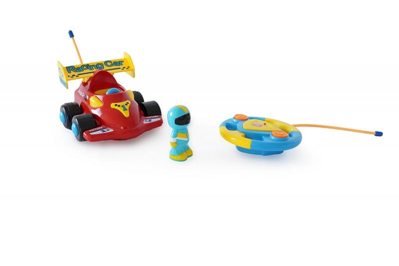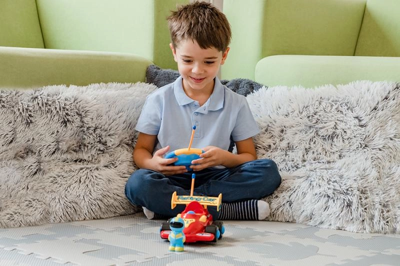 Dieser rote RC-Formelwagen für Kinder ist für kleine Rennfahrer konzipiert. Die Steuerung ist intuitiv – die Lenkrad-Fernbedienung mit großen Tasten ermöglicht Vorwärts- und Rückwärtsfahrt sowie Lenken. Dank der Licht- und Soundeffekte wird das Spiel noch fesselnder und motiviert Kinder zu aktiver Bewegung und Entdecken.