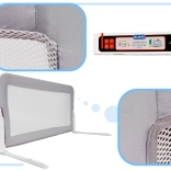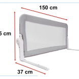Praktisches Kindersicherheits-Bettgitter mit 150 cm Länge in elegantem Grau verhindert Stürze aus dem Bett und sorgt für ruhigen und sicheren Schlaf. Robuste Metallkonstruktion, luftdurchlässiges Mesh für bessere Sicht und Klappscharniere zum schnellen Absenken unter Matratzenhöhe. Einfache Montage ohne Bohren – einfach unter die Matratze schieben.