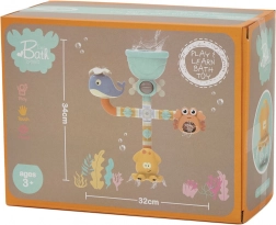 Wal, Krabbe und weitere Figuren verwandeln den Wasserstrom in einen kleinen Wasserfall. Kinder haben Spaß und lernen ganz nebenbei die Prinzipien von Wasserfluss und Regulierung.