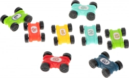 Das Set enthält acht bunte, nummerierte Autos – ideal für gemeinsame Rennen, erstes Zählen und das Unterscheiden von Farben und Formen.