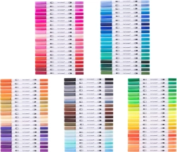 Entdecken Sie die Freude am Gestalten mit dem Set aus 100 doppelseitigen Markern, das eine komplette Farbskala für Hand Lettering, Skizzen, Bullet Journal, Hervorhebungen und Schulprojekte bietet. Jeder Stift kombiniert einen präzisen 0,4-mm-Liner für Konturen und Text mit einer breiteren 1–2-mm-Spitze für schnelles Ausmalen.