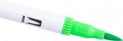 Feiner Liner 0,4 mm für präzise Konturen und Schrift, breitere Spitze 1–2 mm für schnelles Ausmalen und markante Striche – alles in einem Marker.