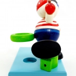 Hinter der Piratenfigur befindet sich eine praktische Halterung, die die Kinderzahnbürste stets griffbereit und trocken hält.