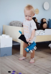 Der Kinderstaubsauger der Marke Kleiner Fuß ist ein multifunktionales Spielgerät für kleine Kinder, das die Rolle eines Staubsaugers mit einem Rutscher kombiniert und an Haushaltsarbeiten in Spielform erinnert.