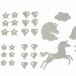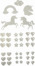 Schaffen Sie im Handumdrehen eine zauberhafte Atmosphäre. Das Set fluoreszierender Dekorationen mit Einhornmotiv leuchtet sanft im Dunkeln, nachdem es mit Licht aufgeladen wurde, und verwandelt jedes Kinderzimmer in ein Märchenreich. Die Elemente befestigen Sie ganz einfach mit dem Klebegummi, der im Lieferumfang enthalten ist.