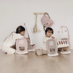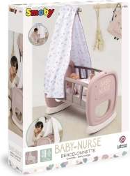 Die Kinderwiege Smoby Baby Nurse mit Stoffbaldachin bringt realistische Eltern-Kind-Rollenspiele ins Kinderzimmer. Dank der abgerundeten Schaukelbasis können kleine Pflegeprofis ihre Puppe sanft in den Schlaf wiegen, während der weiche Baldachin eine behagliche Umgebung schafft.
