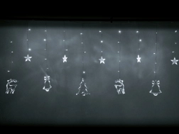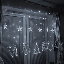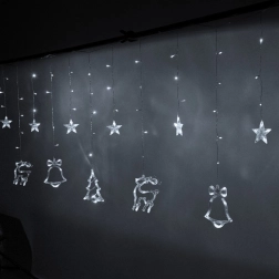 Zaubern Sie zu Hause eine magische Festtagsstimmung mit einer Lichtergardine mit Motiven von Rentier, Bäumchen, Stern und Glocke. 138 LEDs in kaltweißem Farbton erhellen dezent den Innenraum, bieten 8 Leuchtmodi und dank Netzbetrieb leuchten sie ohne Batteriewechsel. Das robuste Kabel garantiert eine lange Lebensdauer und praktische Verbindungsstecker ermöglichen das Koppeln mehrerer Sets.