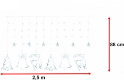 Leuchtende LED-Hänge-Gardine mit Rentier- und Weihnachtssymbolen 2,5 m – Weiß