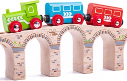 Die BIGJIGS RAIL Brücke verleiht Ihrer Holzeisenbahn beeindruckende Höhe und Länge. Dank der robusten Holzausführung und glatten Verbindungen fahren die Züge flüssig, während unter den Bögen ausreichend Platz auch für hohe Ladungen bleibt. Eine elegante Verzierung, die an Steinmauerwerk erinnert, verleiht dem Set ein realistisches Aussehen.