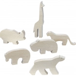 Diese Serie umfasst sechs verschiedene hölzerne Tierfiguren, sodass sich eine vollständige Sammlung zusammenstellen lässt.