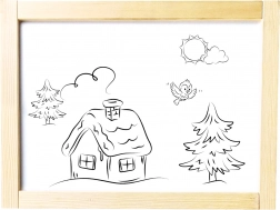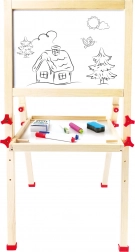 Im Lieferumfang ist alles Nötige enthalten: Kreide, Marker, Schwamm und mehrere magnetische Bildchen. Die Tafel lässt sich schnell zusammenklappen und platzsparend verstauen, sodass sie wenig Raum einnimmt. Zwei Arbeitsflächen ermöglichen, dass zwei Kinder gleichzeitig kreativ sein können.