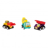 Wir präsentieren ein Set aus sechs farbenfrohen Baufahrzeugen mit Freilaufantrieb, die nur angeschoben werden müssen und dann selbstständig fahren. Diese Fahrzeuge regen die kindliche Vorstellungskraft an und bringen Spielspaß.