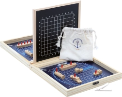 Klassisches Strategiespiel aus Holz in einem tragbaren Koffer für alle Liebhaber von Seeschlachten. Das in Zusammenarbeit mit der Französischen Marine entwickelte Spiel hilft, strategisches Denken zu fördern und bringt auf unterhaltsame Weise Präzision und Zielorientierung mit sich.