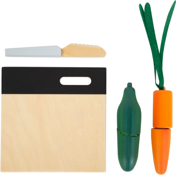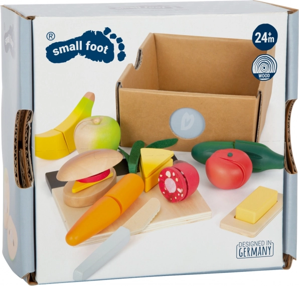 Mit dem Set aus Holz-Lebensmitteln zum Schneiden Small Foot Fresh spielen Kinder kleine Chefköche und trainieren Feinmotorik sowie sicheres Schneiden. Das umfangreiche Set mit Schneidebrett, Holzmesser und realistischen Lebensmitteln mit Klettverschluss fördert kreatives Spiel, Wissen über gesunde Ernährung und dank der wiederverwendbaren Verpackung auch umweltfreundliche Gewohnheiten.