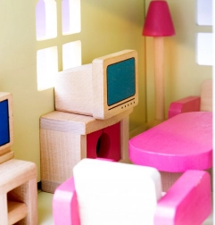 Dieses Set von Holzmöbeln für Puppenhäuser ist die ideale Lösung für jeden kleinen Innenarchitekten. Das Set enthält alles, was zur Ausstattung von Küche, Wohnzimmer, Schlafzimmer, Badezimmer und sogar Dachboden benötigt wird.