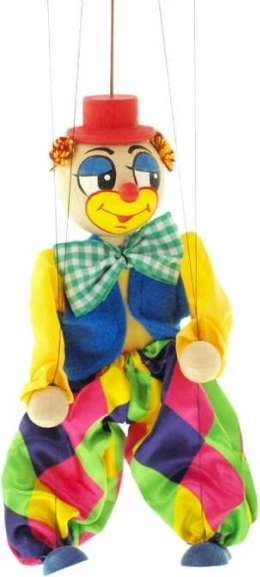 Die große Clown-Marionette aus Holz wurde mit Liebe gestaltet, um jedem Heimtheater Freude zu bringen. Durch das einfache Führungs‑Kreuz lässt sie sich sowohl von Kindern als auch Erwachsenen leicht bedienen – so können eigene Geschichten und Szenen zum Leben erweckt werden.