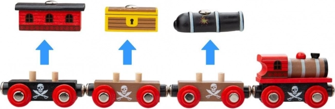 Piratenzug von Bigjigs Rail ist die ideale Wahl für kleine Abenteurer. Dieses Set enthält eine Lokomotive und drei detaillierte Waggons mit klassischer magnetischer Verbindung. Kompatibel mit allen Holzbahnsystemen.