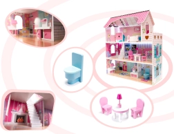 Holz-Puppenhaus mit Möbeln - 70 cm