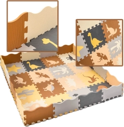 Die Matte kann als große Spielfläche 143 × 143 cm genutzt oder zu einem Spielgitter 113 × 113 × 16 cm zusammengestellt werden. Weicher EVA-Schaum dämpft Stöße, isoliert gegen Kälte und ist rutschfest. Das Material ist leicht zu reinigen – einfach mit einem feuchten Tuch abwischen. Die elegante neutrale Farbpalette passt zu modernen Interieurs und kann einen Teppich im Kinderzimmer ersetzen.