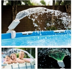 Genießen Sie abendliches Baden mit einem zauberhaften Lichteffekt. Der INTEX Brunnen erzeugt einen dekorativen Wasserstrahl mit LED-Hintergrundbeleuchtung in vier Farben (weiß, rot, blau, grün), verbessert die Wasserzirkulation und -oxygenierung und unterstützt so die Wirkung der Poolchemie. Dank des hydroelektrischen Generators benötigt er keine externe Stromversorgung – das Licht schaltet sich bei Wasserfluss automatisch ein.