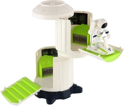 Auf dem Dach der Station befindet sich ein Weltraumseil, mit dem der Astronaut sicher zu einem „Weltraumspaziergang“ aufbrechen kann. Im Set gibt es einen Parkplatz für das Weltraum-Gleitfahrzeug und die Möglichkeit, ein Raumfahrzeug aus kompatiblen Sets zu „aufladen“. Alles ist sofort spielbereit – 2× AA-Batterien sind im Lieferumfang enthalten.