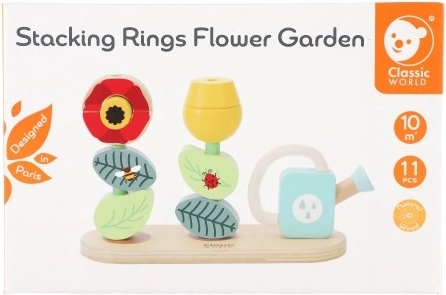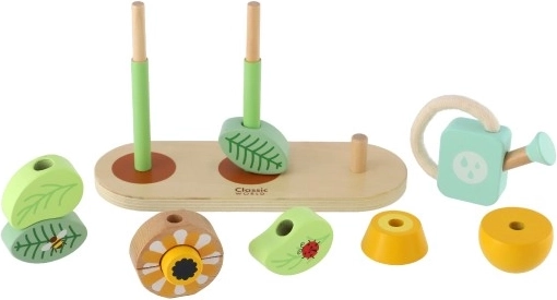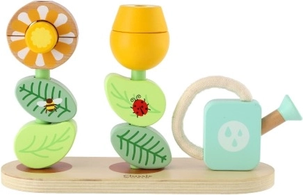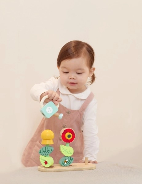 Stapelfähige Holzteile können schöne Blumenstrukturen schaffen, die die kindliche Kreativität fördern.
