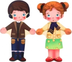 Ein Holzbrett mit Jungen- und Mädchenfiguren hilft, die feine Motorik und logisches Denken zu fördern.