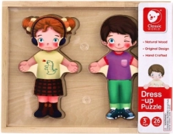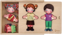 Entdecken Sie die lustige Welt der Mode mit dem Holzpuzzle Ankleiden! Dieses Spielzeugset enthält 26 Teile, die es ermöglichen, Jungen- und Mädchenfiguren nach der eigenen Fantasie zu kleiden. Jedes Stück ist so gestaltet, dass es Kinder zu kreativem Spiel und zur Entwicklung ihres ästhetischen Empfindens anregt.